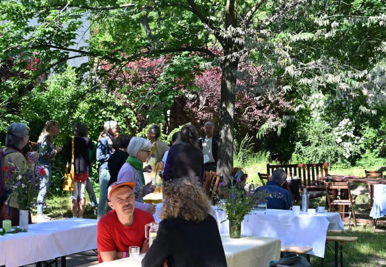 Dafür bereiten wir eine inspirierende und gemeinschaftliche Atmosphäre, in der alle Sinne gut genährt sind – durch Teilen von Wissen und Können, durch gutes Essen und Musik, durch offenen Austausch und Raum für Begegnungen.